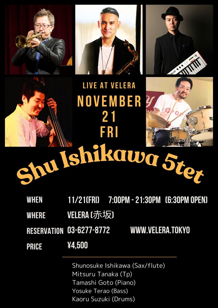 石川周之介 Quintet LIVE & EVENTS 2025/11/21(金) 石川周之介 Quintet 11/21 (Fri) 会場:Velera(赤坂) 演奏時間:19:30 - 22:00 チャージ:¥4,500 出演 石川周之介 (Ts, Fl) 田中充 (Tp) 後藤魂 (P) 寺尾陽介 (B) 鈴木郁 (Ds) https://velera.tokyo/live/20251121-石川周之介/ URLをコピーする 報告する